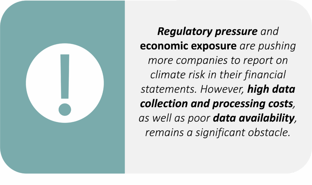 But regulatory pressure is only part of the story. The extent to which companies are economically exposed to climate risk and opportunities also plays a critical role. Firms with carbon-intensive business models, a high exposure to regulatory transition risks, or strategic climate opportunities are far more likely to disclose climate information in their financial reports. Interestingly, physical climate risks — such as extreme weather — appear to have little effect on disclosure behavior, possibly due to their complex, uncertain and/or distant nature. Still, significant barriers remain. High data collection and processing costs, along with limited data availability, continue to hinder broader and deeper climate disclosure.
